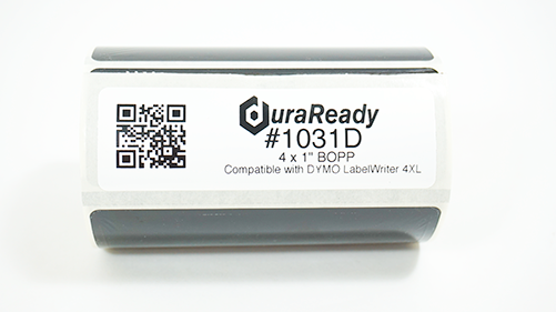 #1041D, 4.0 x 1.0" White BOPP Plastic DuraReady Label, 500 per roll, Compatible with a wide range of non-proprietary label printers, including popular models like Zebra-compatible printers with 4.375" media width and the LabelWriter 4XL
