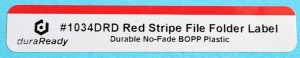 #1034DRD, 9/16 x 3-7/16" Red Stripe BOPP Plastic DuraReady File Label, 265 per roll, Compatible with a wide range of non-proprietary label printers, including Zebra compatibles and Dymo Labelwriter 450