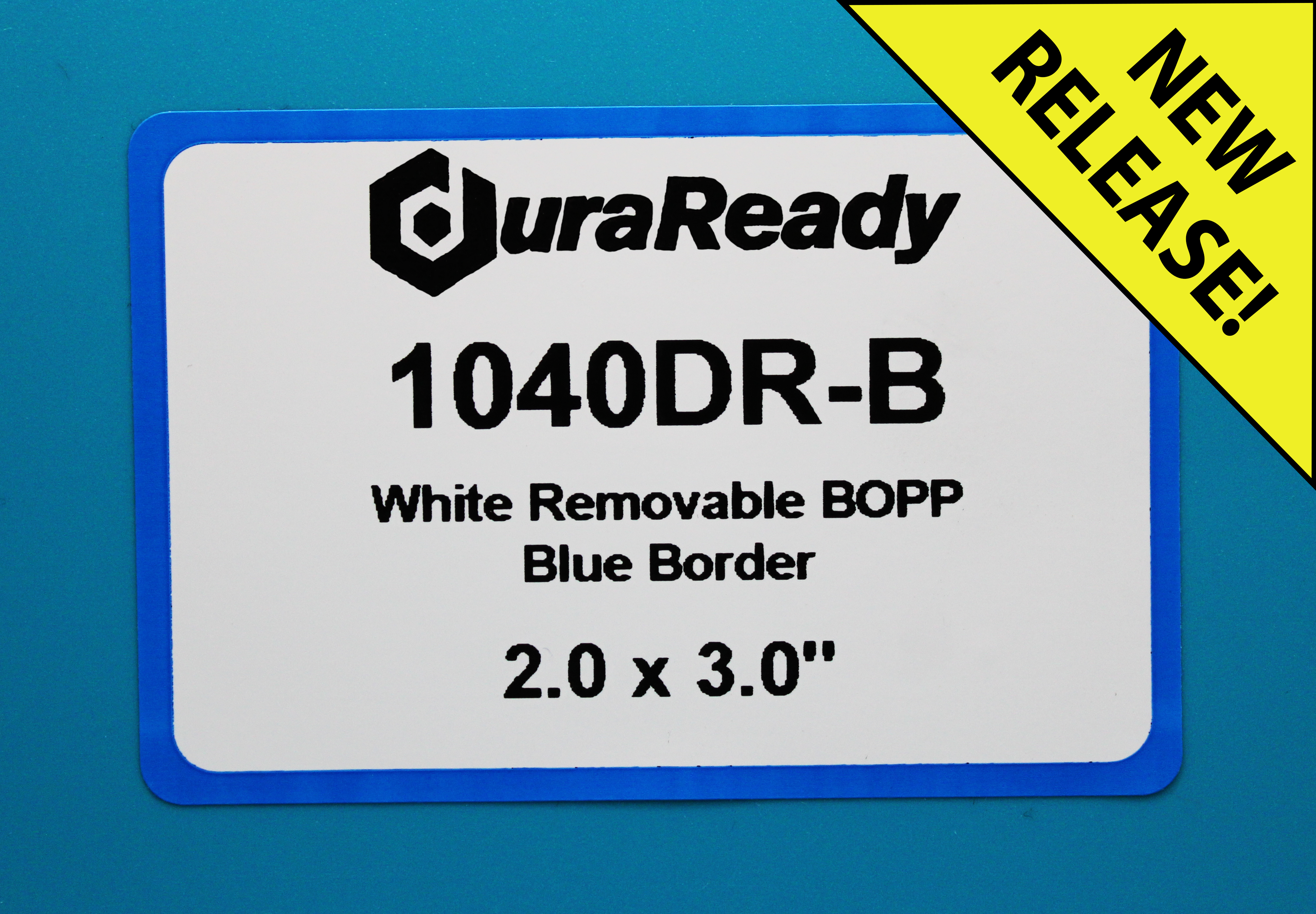 DuraReady's large, white plastic with blue border label is ideal for windows/glass, container and packaging applications. With added excellence in UV-resistance for maximum no-fade performance these labels provide a clean no-label look on clear materials.