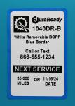 #1040DR-B 2.0 x 3.0" White Removable with Blue Border BOPP Plastic DuraReady Windshield Label, 230 per roll, Compatible with a wide range of non-proprietary label printers, including Zebra compatibles and Dymo Labelwriter 450