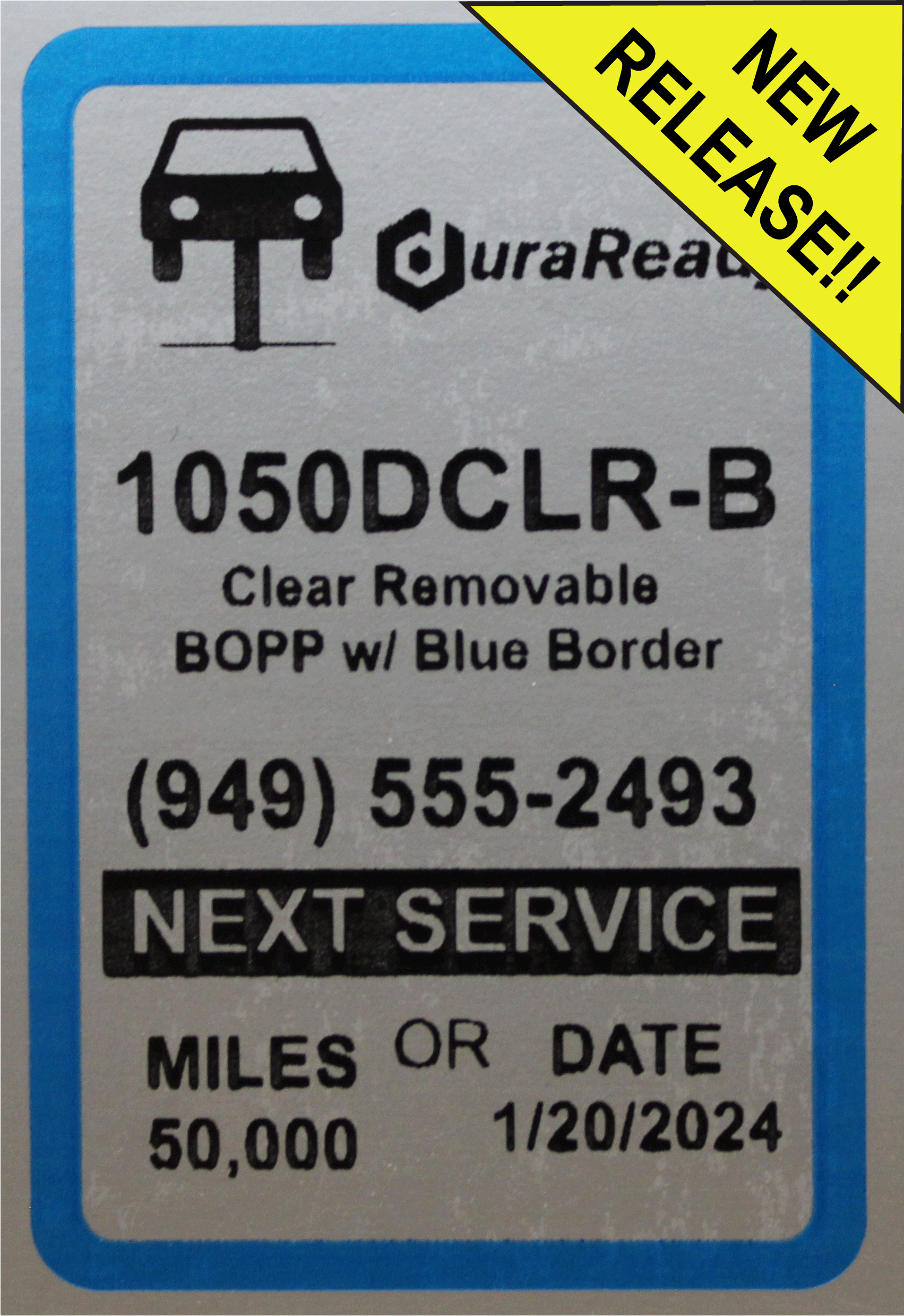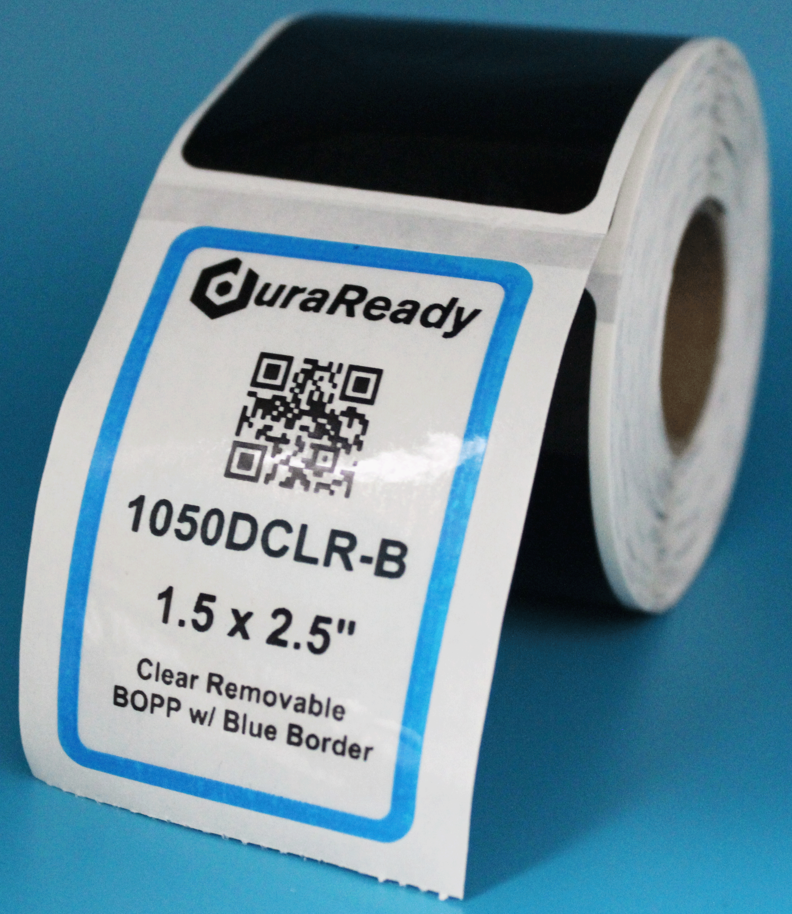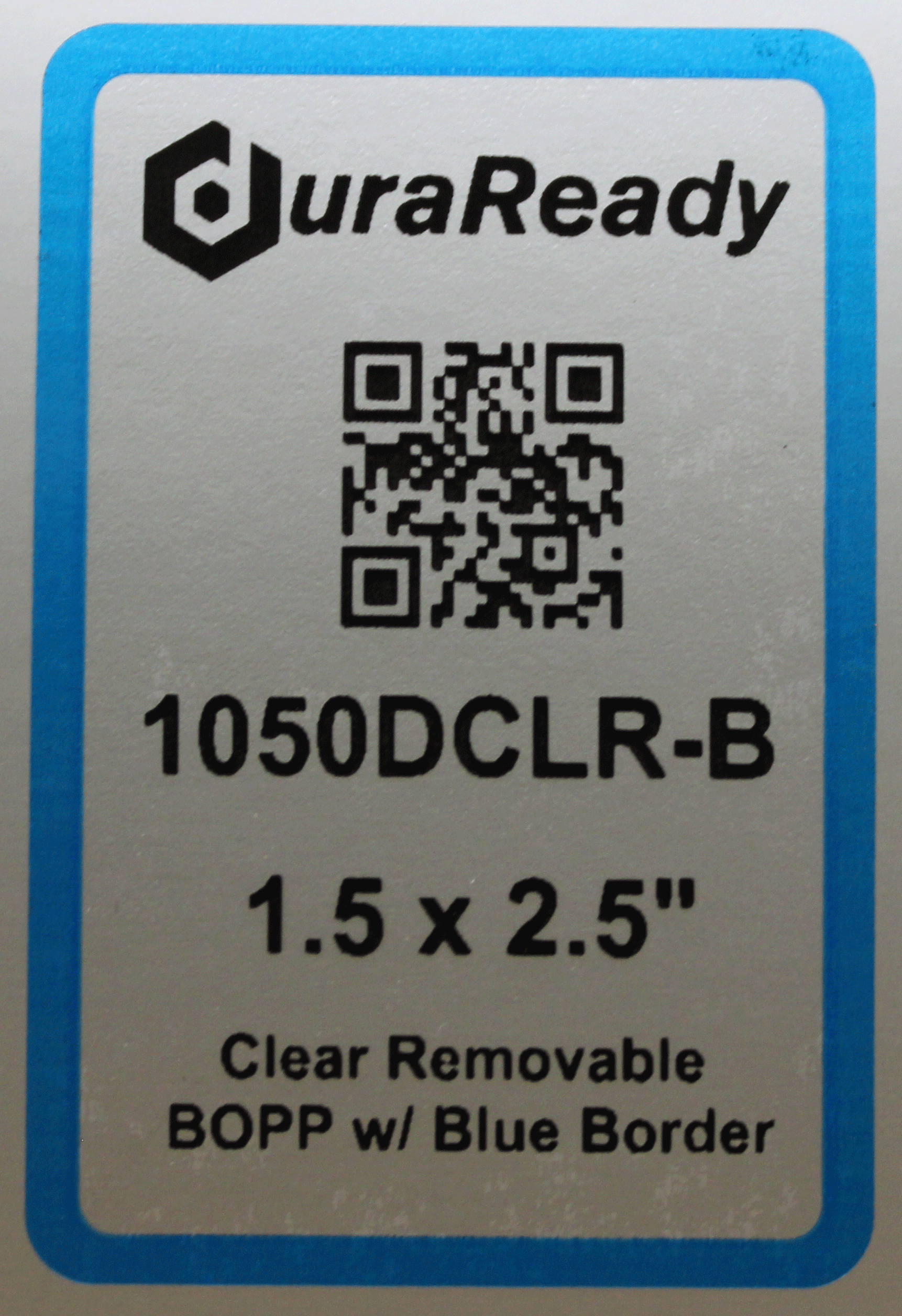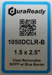 #1050DCLR-B, 1.5 x 2.25" Clear BOPP Plastic DuraReady Label w/ Removable Adhesive, Blue Border, Windshield Label, 250 per roll, Compatible with a wide range of non-proprietary label printers, including Zebra compatibles and Dymo Labelwriter 450