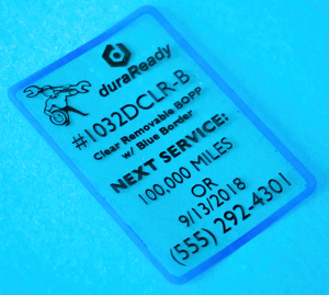#2032DCLRX-B, Large Capacity roll of 1.75 x 2.5" Clear Removable Polyester Plastic DuraReady Label with Blue Border, Windshield Label, 500 per roll, Compatible with a wide range of non-proprietary label printers, including Zebra compatibles and Dymo Labelwriter 450
