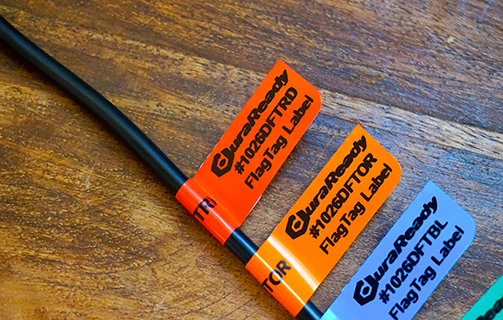 #1026DFTRD, 0.5 x 1.0" Durable No-Fade, No-Discolor Red BOPP Plastic FlagTag label, 300 labels per roll, Compatible with a wide range of non-proprietary label printers, including popular models like Zebra-compatible printers and the LabelWriter 450